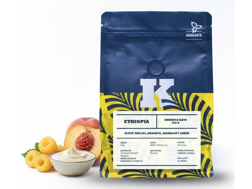 Výběrová káva Ethiopia Guji byla vypěstována v nadmořské výšce 2000–2200 m n. m. Zpracována byla promytou metodou, díky které získala chuť žlutých malin, broskví a mandlového krému.
